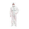 限次性帶彈性兜帽無紡布防化服。5層Deltachem? 無紡布,SMS復合無紡布材質,外有雙層防化層。腰部、腳踝、袖口和兜帽外緣彈性收緊。雙層沿邊保證密封性,拇指處雙層彈性袖口....