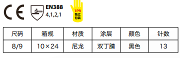無(wú)縫尼龍針織手套。手掌和手指雙丁腈涂層,更好的防油和保護(hù)手指。加強(qiáng)接頭強(qiáng)度,使用壽命更長(zhǎng)。彈性的手腕,透氣性能優(yōu)秀,松緊適度,柔軟舒適。 適用零件制作、包裝、清洗等輕微油性還需要機(jī)械防護(hù)的環(huán)境。