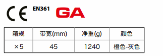 雙調(diào)三掛點(diǎn)安全帶,配有2個(gè)前側(cè)爬梯掛點(diǎn)和1個(gè)背部掛點(diǎn),橙/灰雙色橫條高強(qiáng)度織帶,肩部配有Riplight波型減壓調(diào)節(jié)扣,左肩胛部配有下墜指示器,黑色超大型連接環(huán)。HAR23胸部加強(qiáng)扣環(huán)。 屬于消防二類安全帶。通過(guò)國(guó)家消防裝備質(zhì)量監(jiān)督檢驗(yàn)中心消防檢測(cè)。